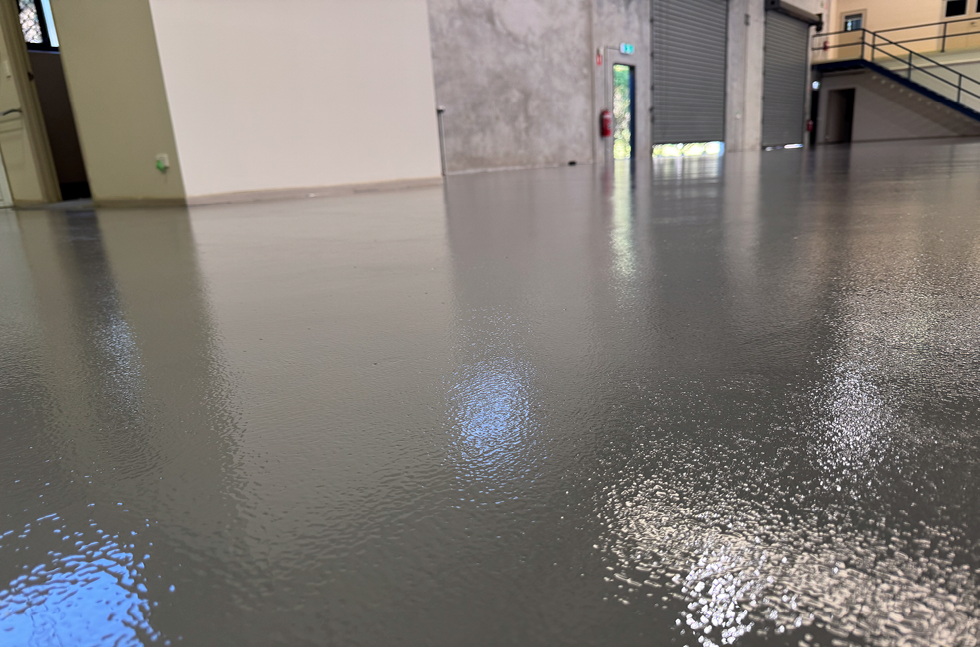 Surfex stepped in with their proven expertise in flooring applications, utilising the Deckshield ID system. The team began with surface preparation, ensuring the warehouse floor was ready for the application. To create a lasting foundation, Flowprime AU was applied to the concrete substrate, with additional attention focused on high-traffic areas, particularly near the rear doors. A slip-resistant