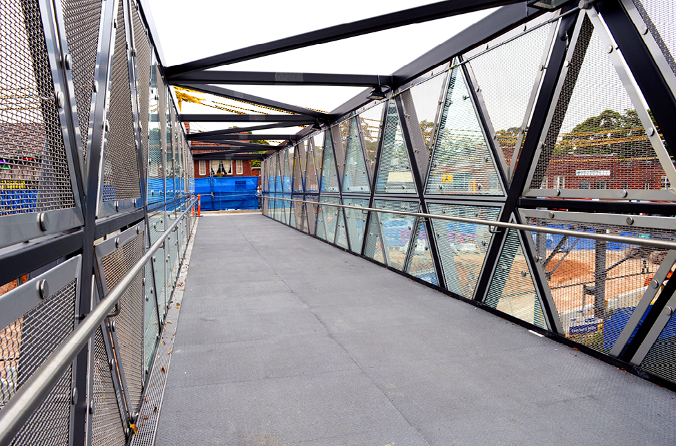 A flooring solution was required to cover the existing metal panel floor surface of the 34mtr footbridge, situated in Pennant Hills, New South Wales.
