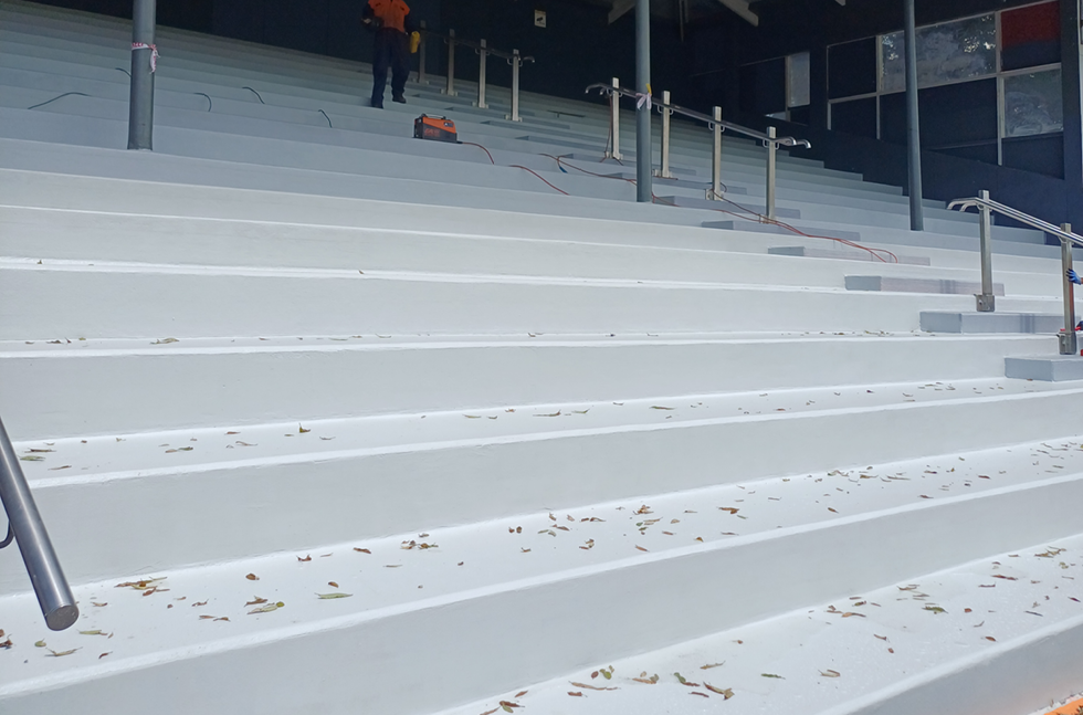 The multi-layer system, including five coating layers and full fibreglass reinforcement, covered 6,200m² across the 1,260m² footprint. The strategic application of Deckshield ID and ED Rapide has not only resolved the critical issue of water ingress but also delivered a durable, safe, and aesthetically pleasing surface. The result is a revitalised community asset, fully protected and ready to serve the public for many years.