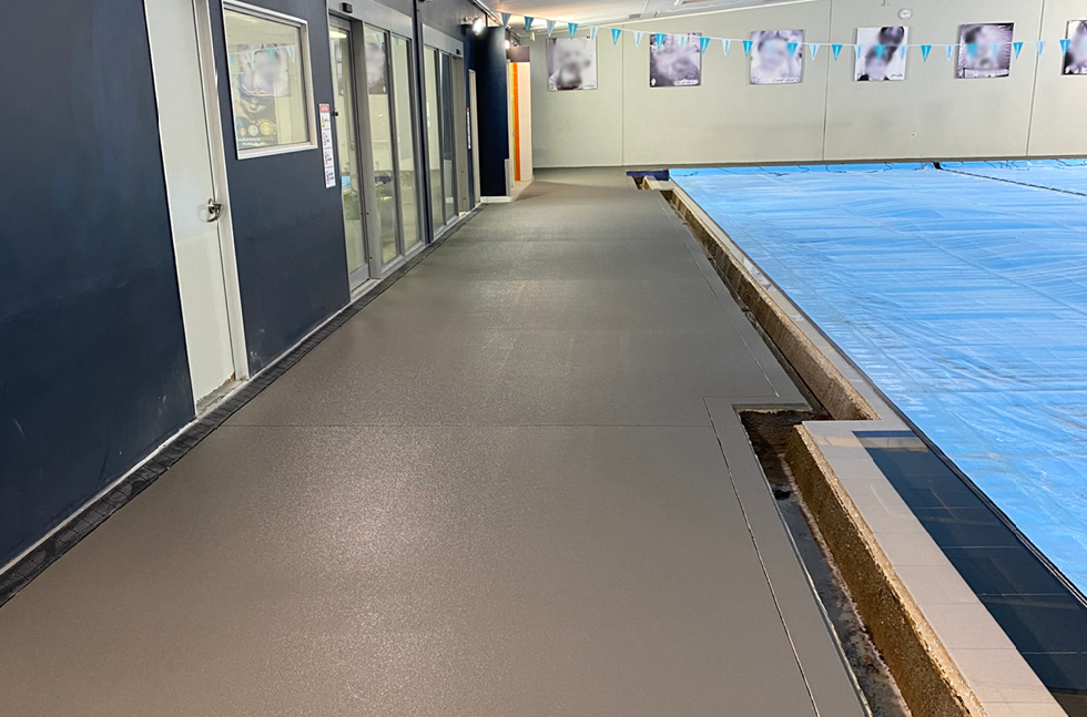 Multiblast Industrial Flooring installed the Deckshield ID system to the pool surrounds at the four sites with areas ranging from 210m2 to 349m2 in a grey colour to match the building surrounds in 2020. Four years later, the site still looks great as the Deckshield ID system provides a protective and slip-resistant platform underfoot, aligning with the swim school's commitment to prioritizing safety without compromising on visual appeal.