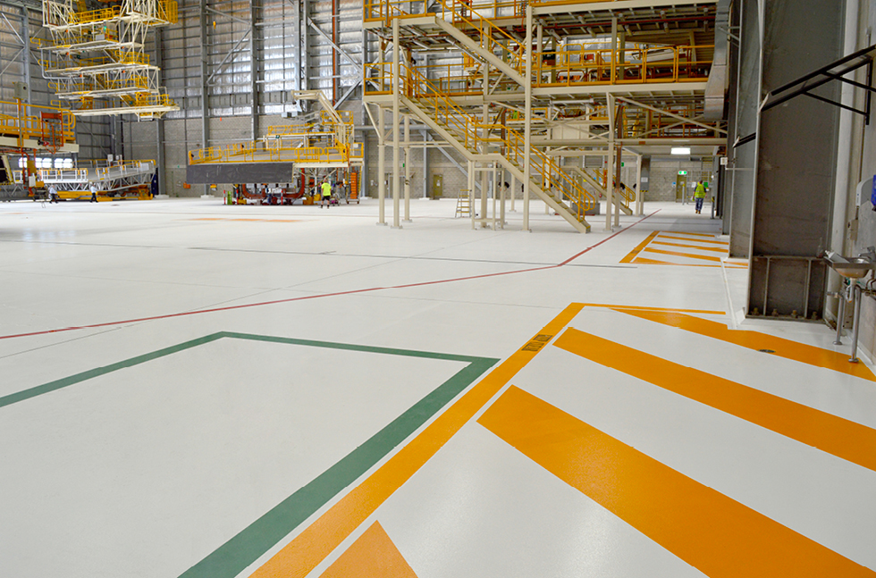 Part of the redevelopment program included replacement flooring in the existing RAAF No. 33 Squadron Aircraft Maintenance Facility, which is used to house, repair and service military aircraft.