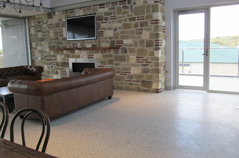 Flowcrete's Flowcoat Terrosso system was selected to cover the 400m2 multi-purpose, open-plan area. A bespoke colour flake combination was chosen by the client to offer a natural finish that flows cohesively with the stylish wood furnishings, chandeliers and picturesque surroundings.
