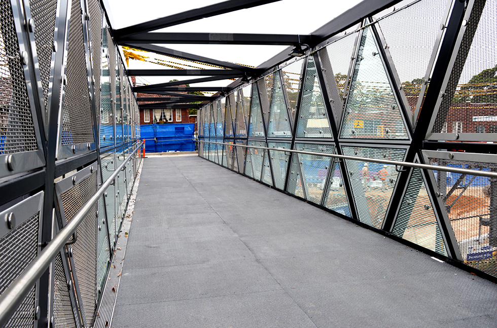 A flooring solution was required to cover the existing metal panel floor surface of the 34mtr footbridge, situated in Pennant Hills, New South Wales.